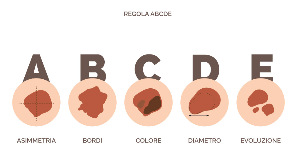 Per identificare possibili segni di melanoma, i dermatologi utilizzano spesso la regola ABCDE.
