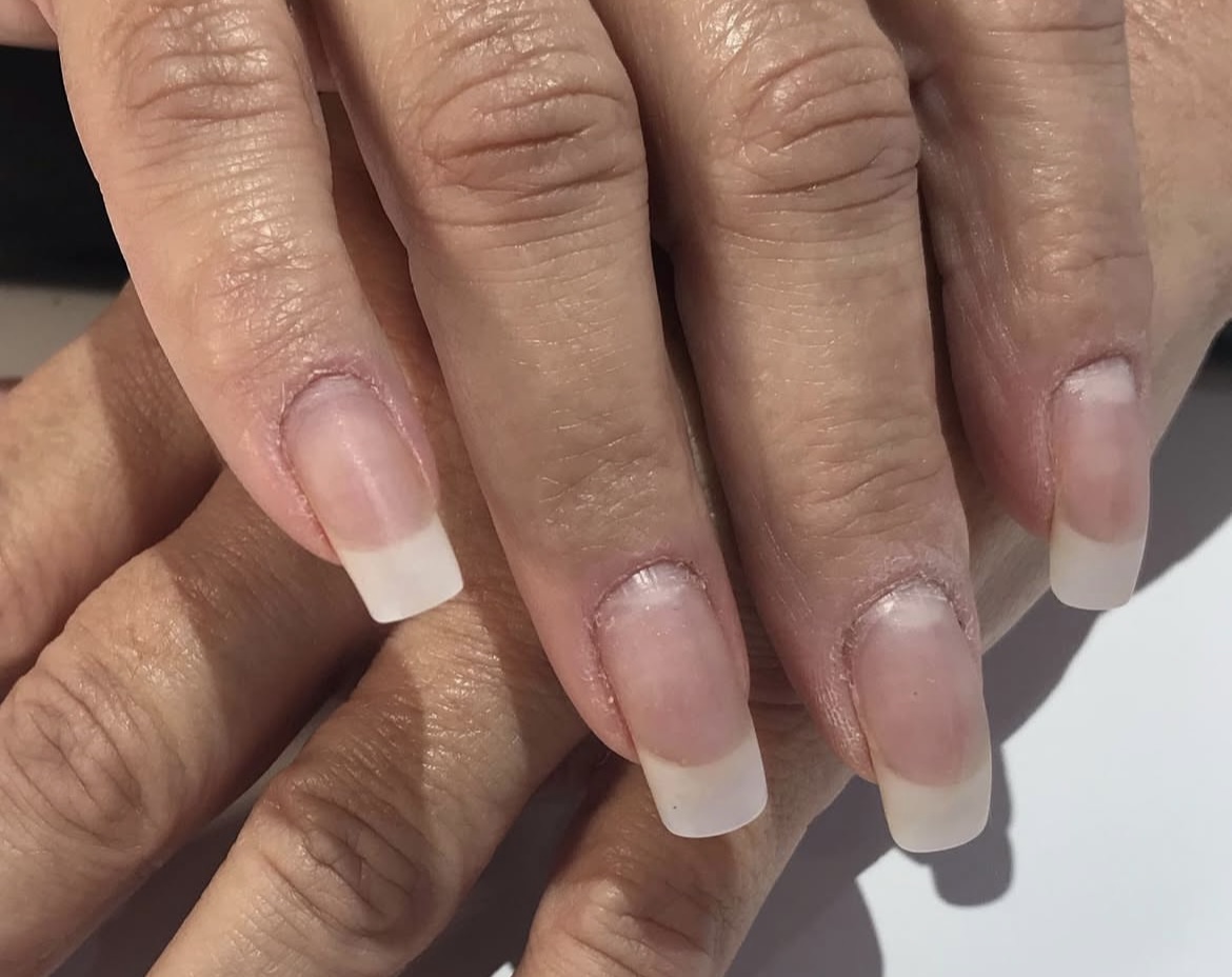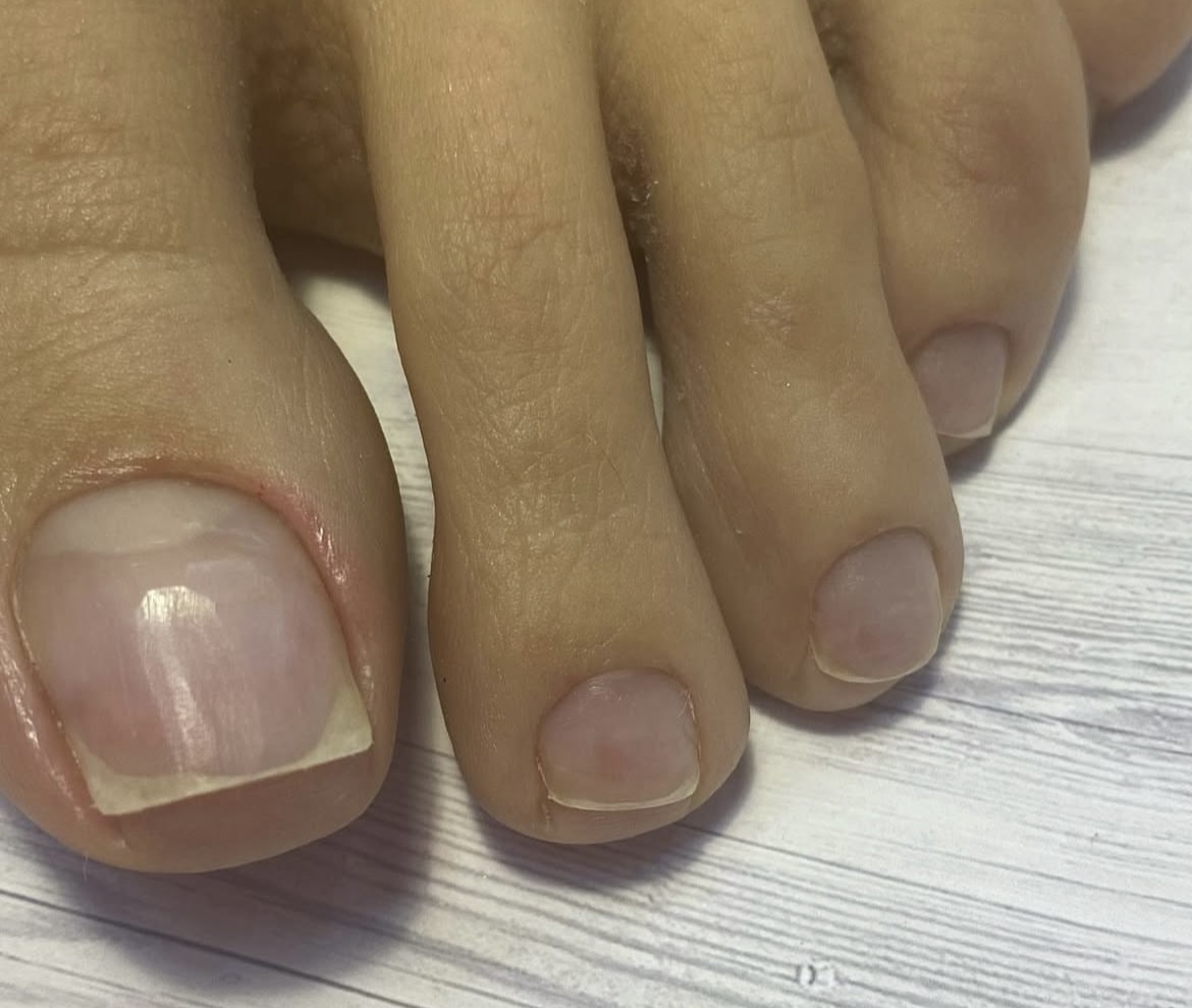 Цвет — от светло-розового до прозрачного с лёгким естественным блеском. Ногтевая пластина плотно прилегает к коже и не отслаивается.